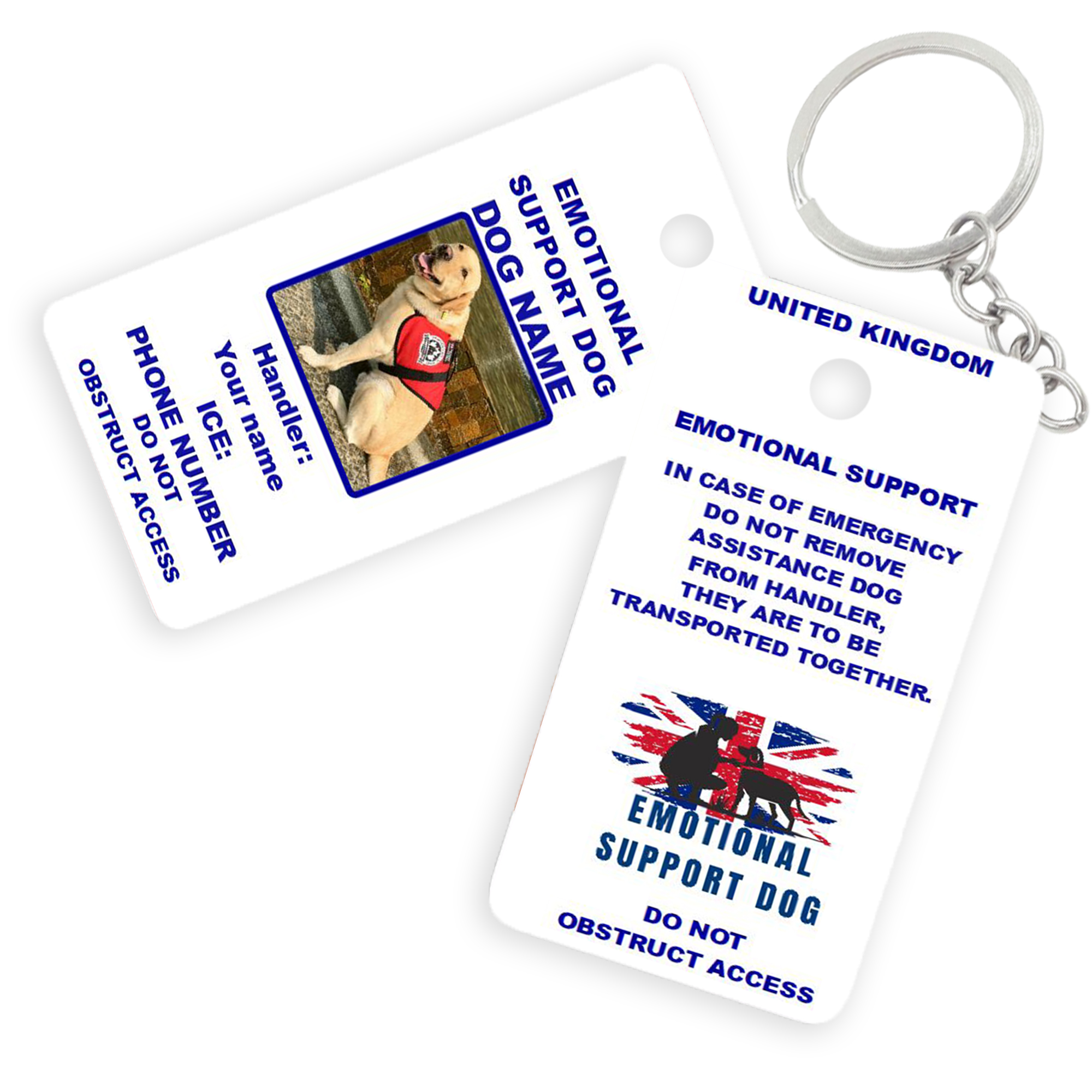 Personalised ID – Customise with your emotional support dog’s photo, name, your name, and emergency contact.